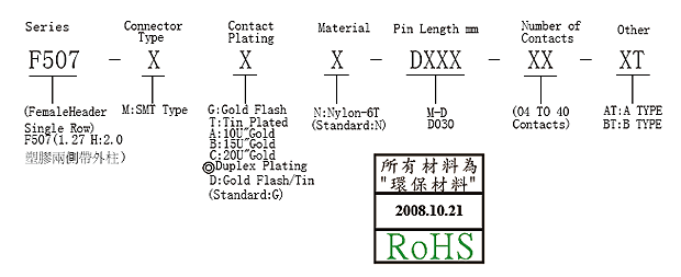 F507-MGN-D030-XX-XT 1.27 Female Header SMT單排