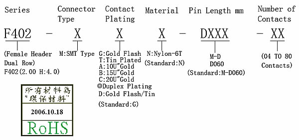 F402-MGN-D060-XX 2.0 Female Header SMT雙排