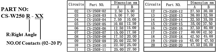 CS-W250R-XX 2.50mm(0.098")Pitch Wafer Series